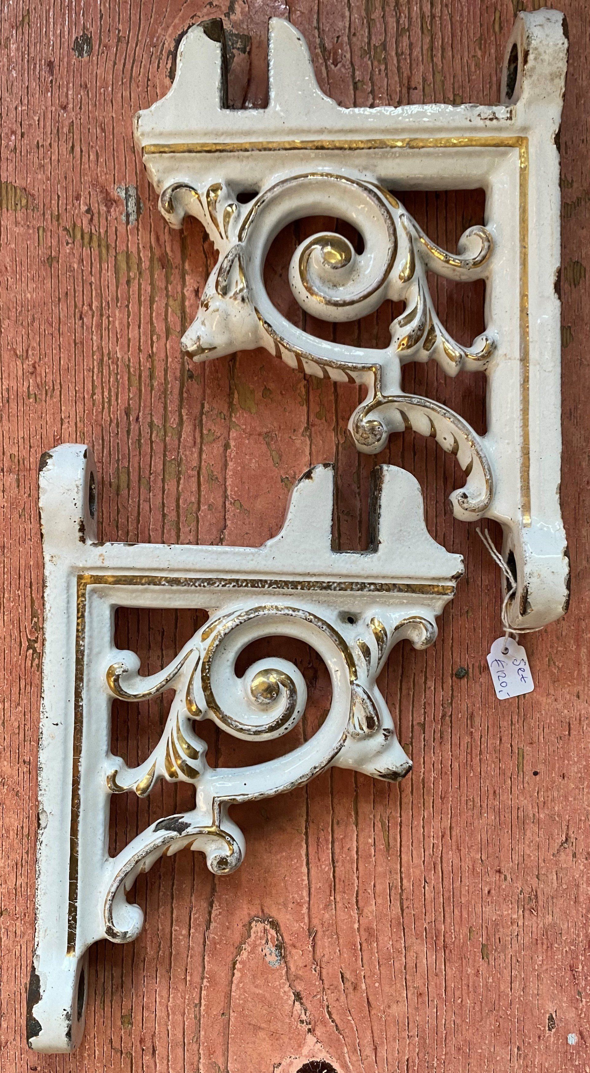 ButtonSet of two 15 cm x 23 cm cast Iron shelf supports / bearers, with pig heads. Art deco originals. Heavy. Price 125 for the set.